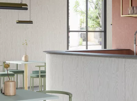 Idealizado no polo de design italiano Brera, este carvalho feito de lâmina de madeira recomposta cria um novo patamar para os padrões madeirados em projetos refinados e com muita personalidade.