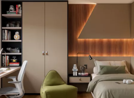 Com tons claros e madeirados, o padrão apresenta um relevo suave nos veios e nós, criando uma textura que reproduz com perfeição a naturalidade da madeira, destacando a beleza e design do mobiliário.