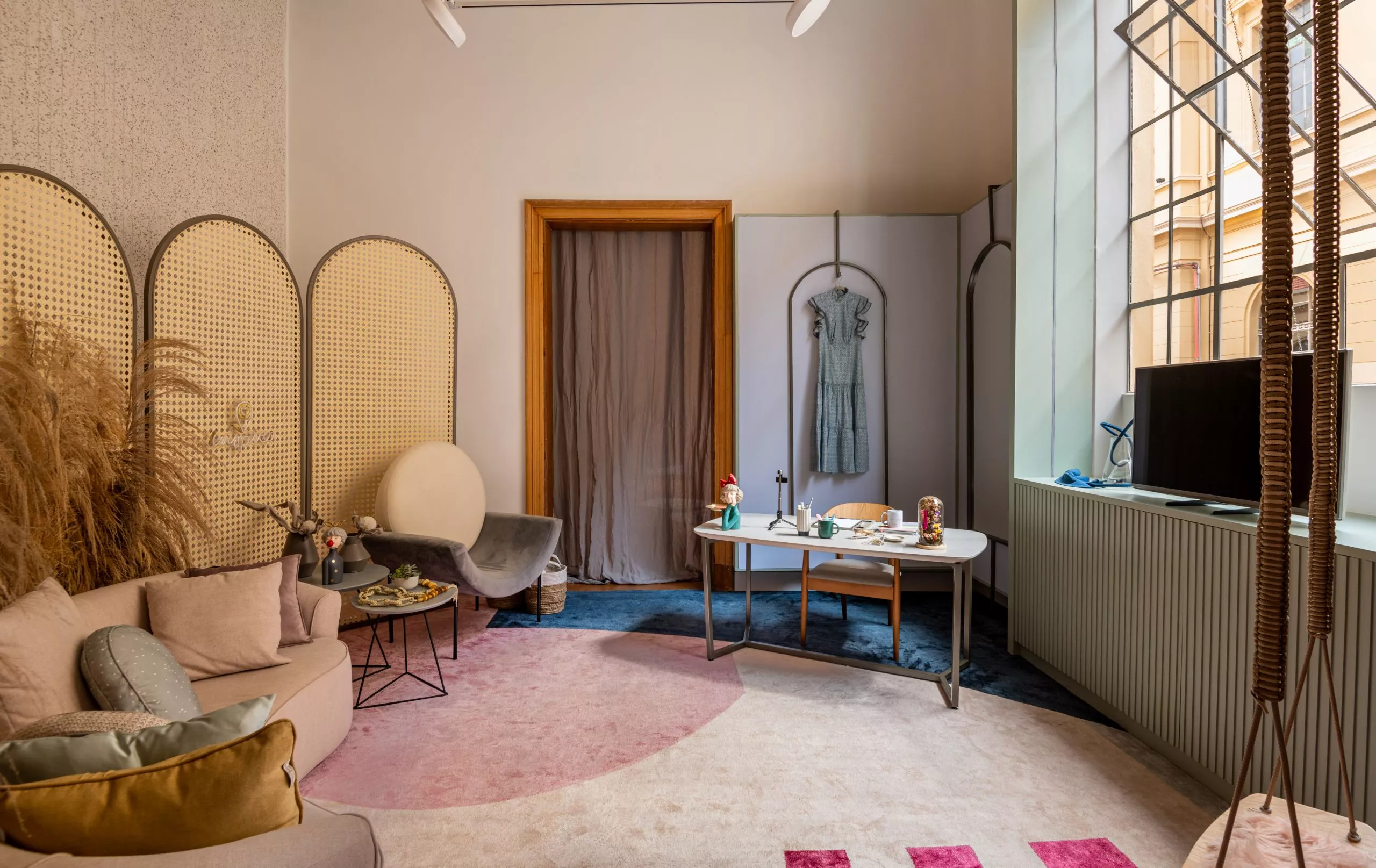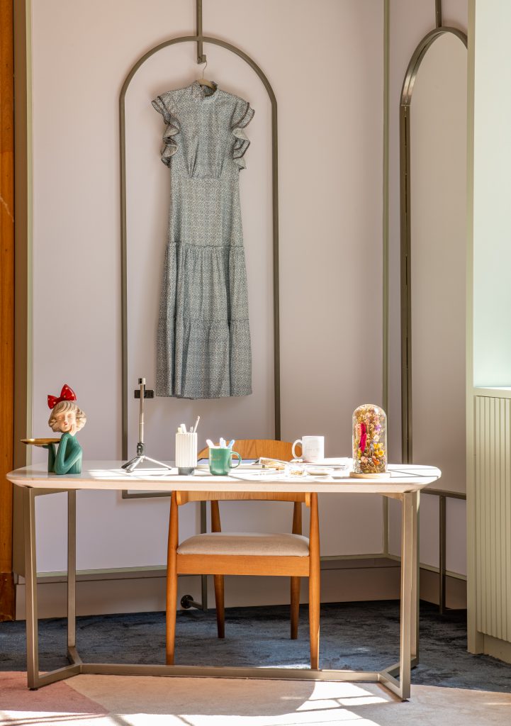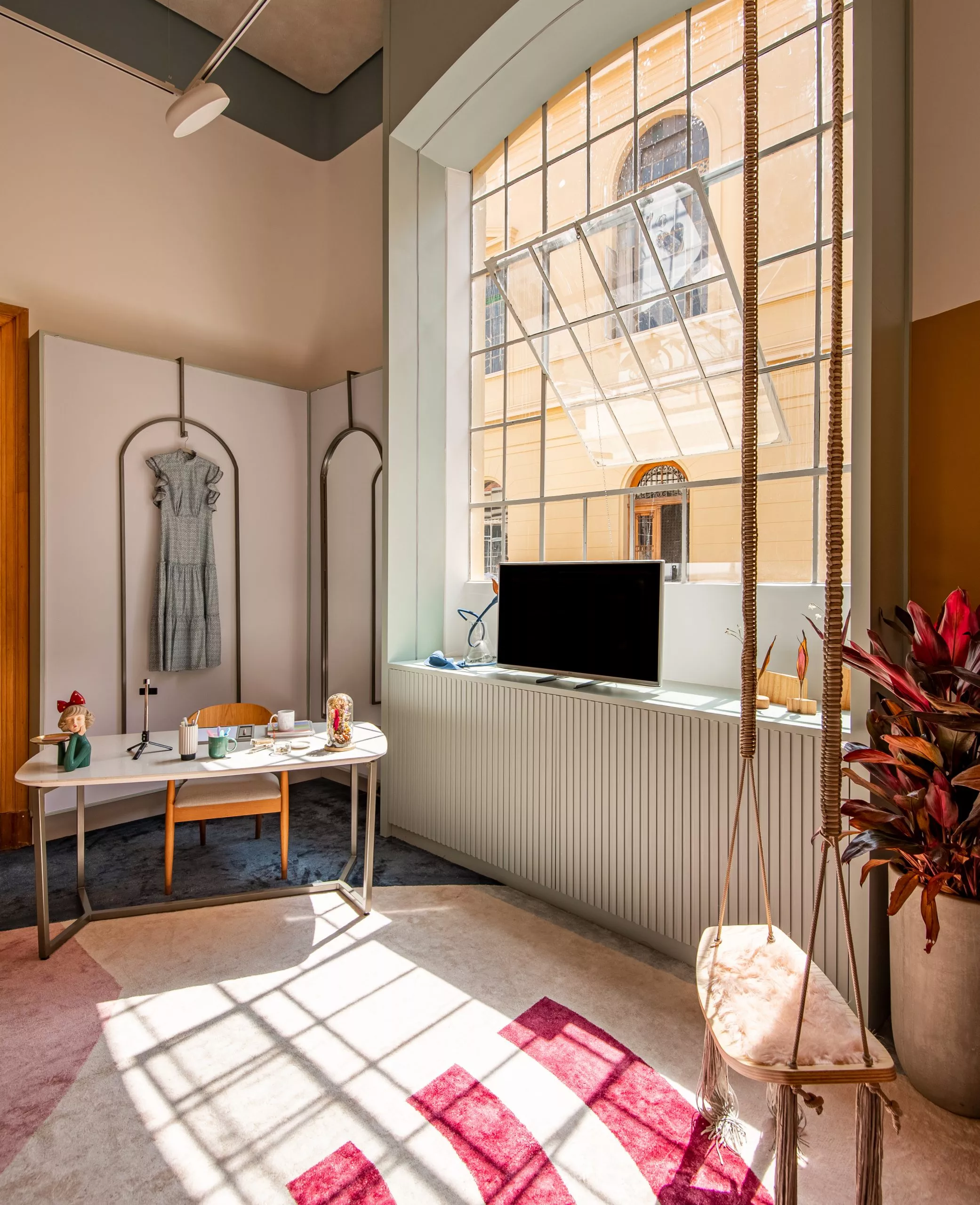 No ambiente “Estúdio Digital Influencer”, das arquitetas Jojo Carvalho e Maria Gabriela Linares, usam o padrão Mint, da Linha Essencial, para revestir as janelas e produzir o mobiliário. De acordo com as profissionais, a tonalidade neutra e suave, ao mesmo tempo alegre, trouxe paz e tranquilidade e agregou harmonia ao ambiente.