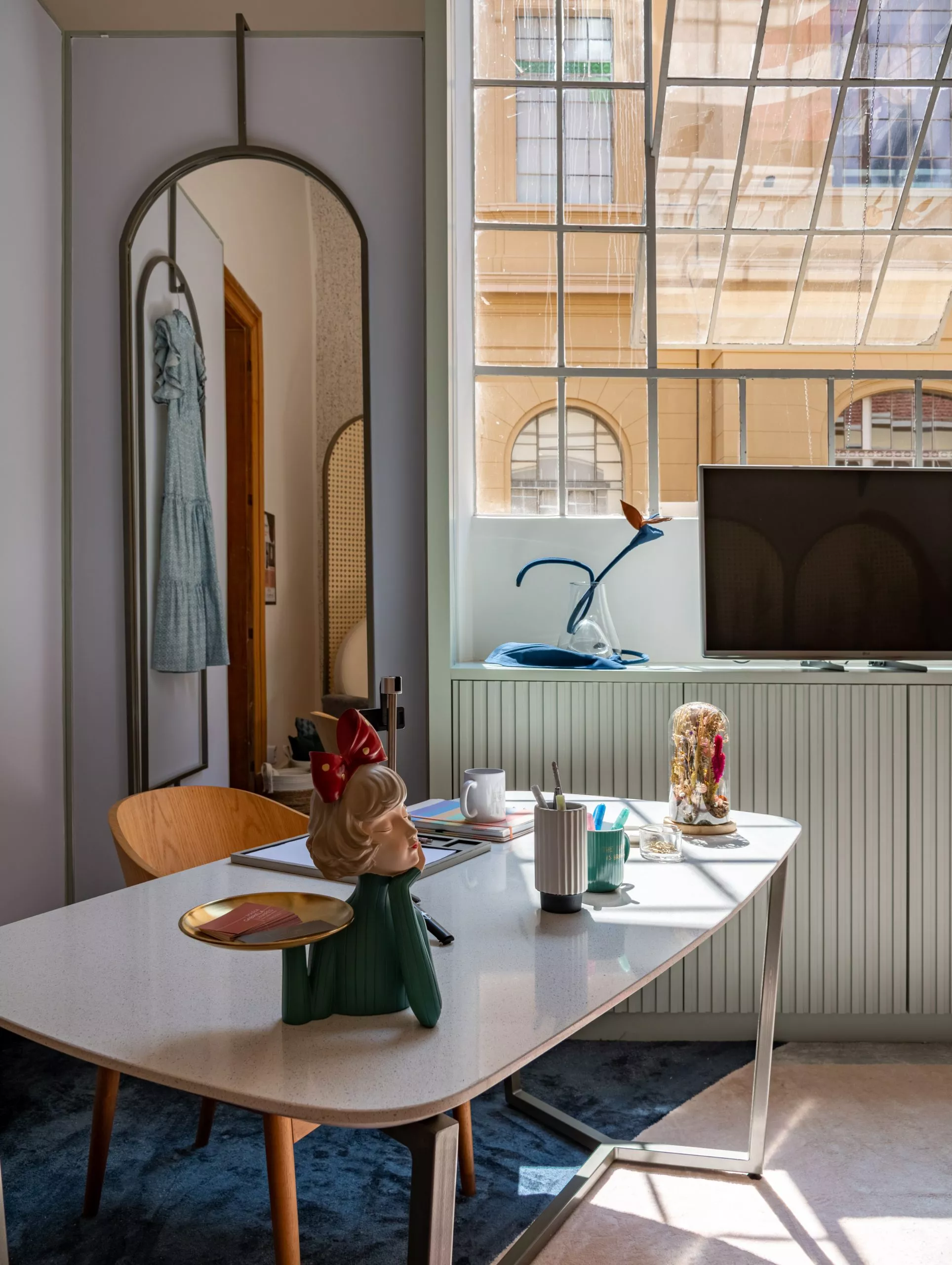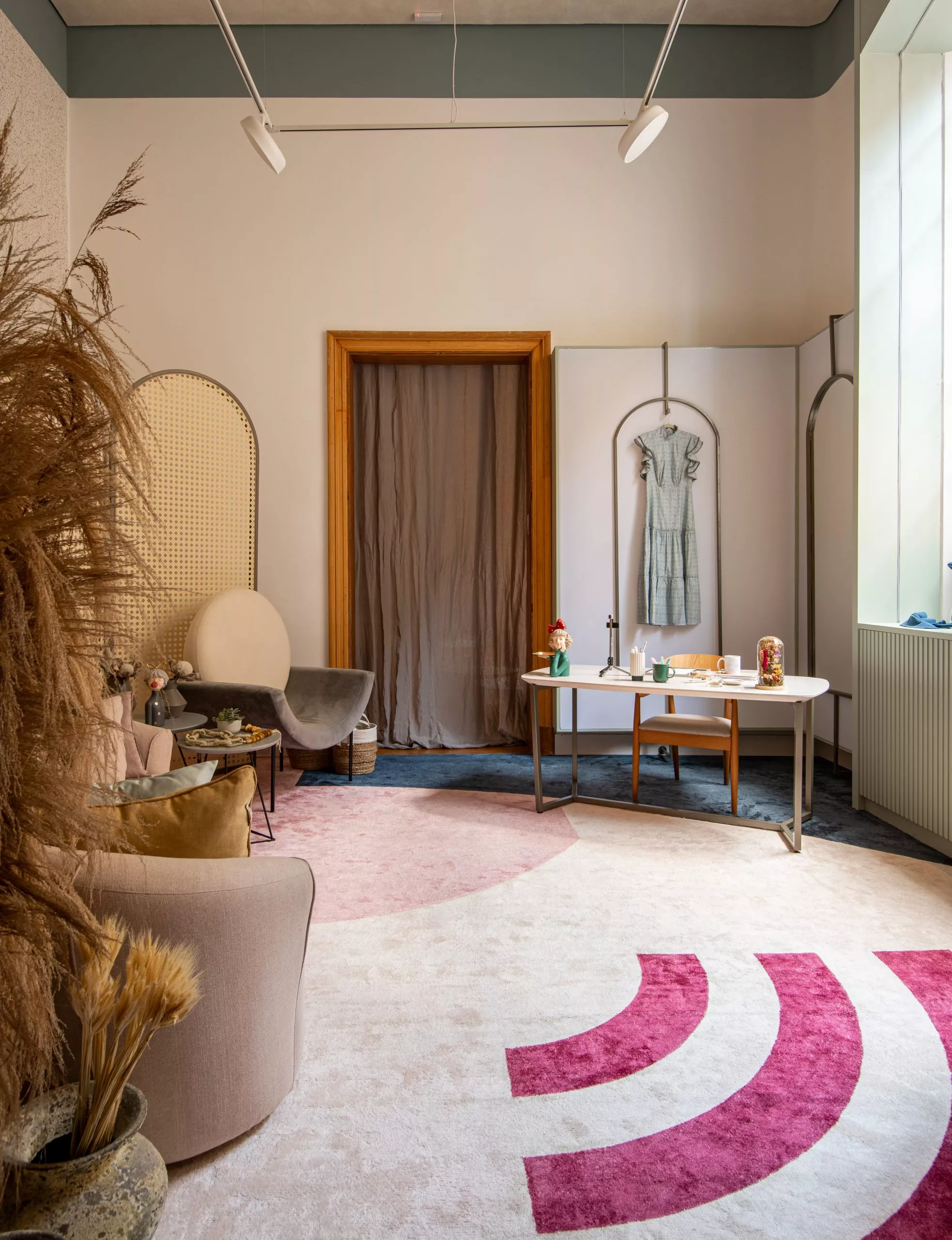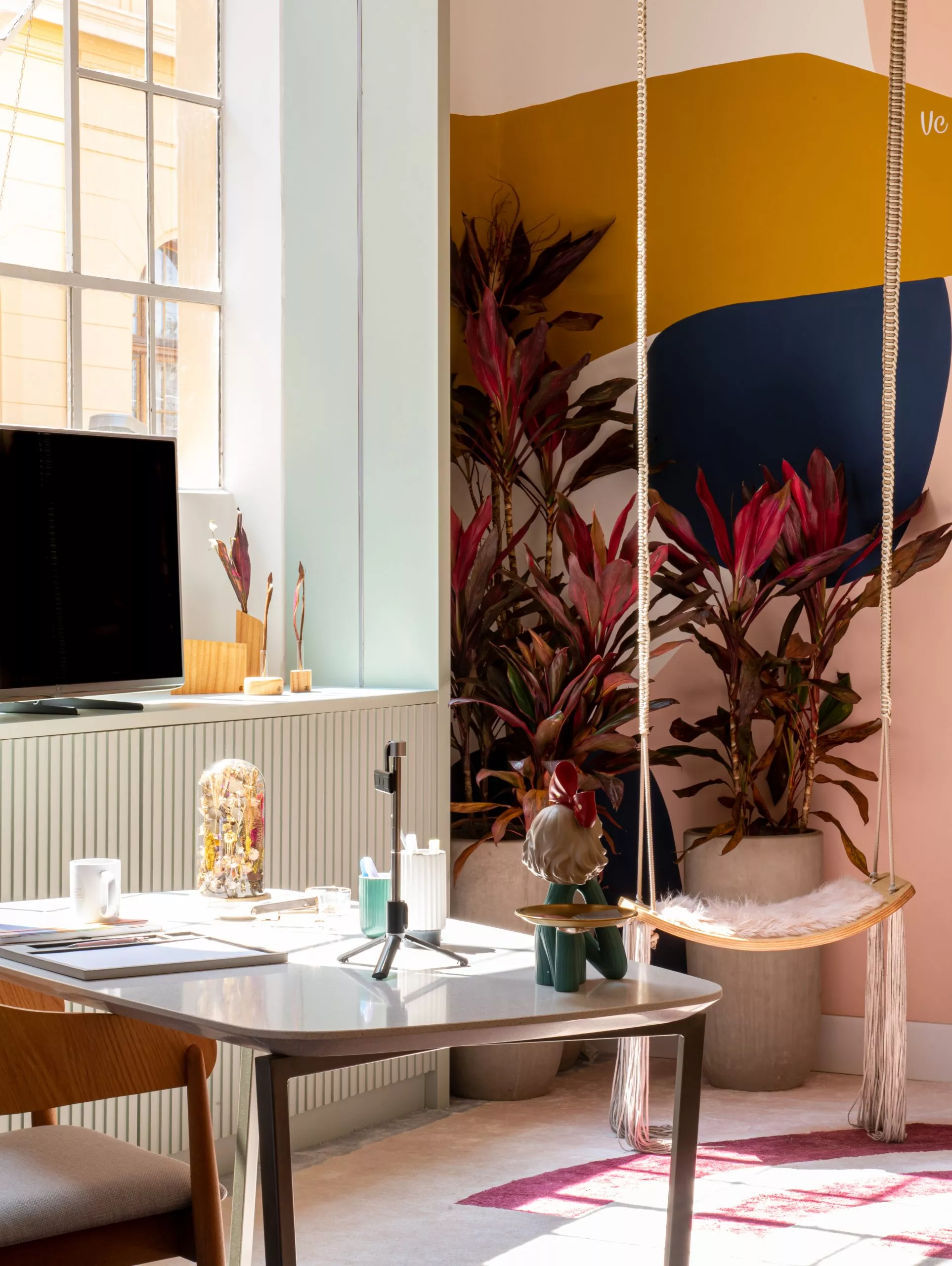 No ambiente “Estúdio Digital Influencer”, das arquitetas Jojo Carvalho e Maria Gabriela Linares, usam o padrão Mint, da Linha Essencial, para revestir as janelas e produzir o mobiliário. De acordo com as profissionais, a tonalidade neutra e suave, ao mesmo tempo alegre, trouxe paz e tranquilidade e agregou harmonia ao ambiente.
