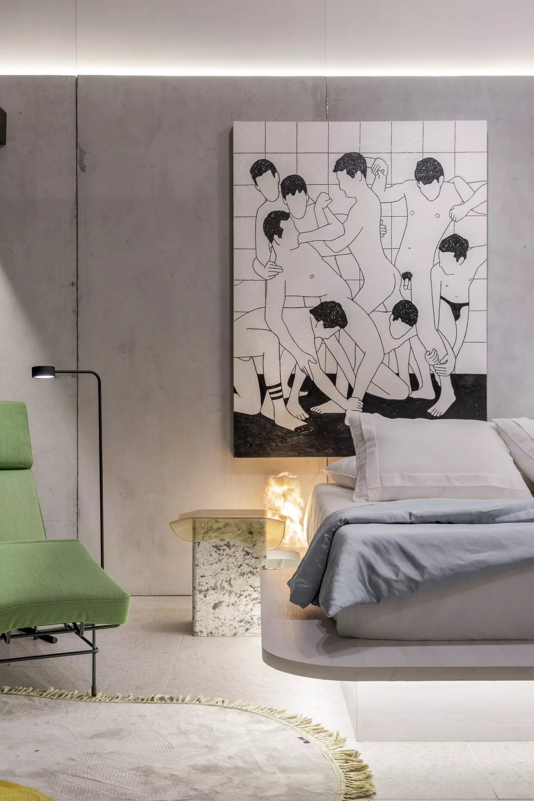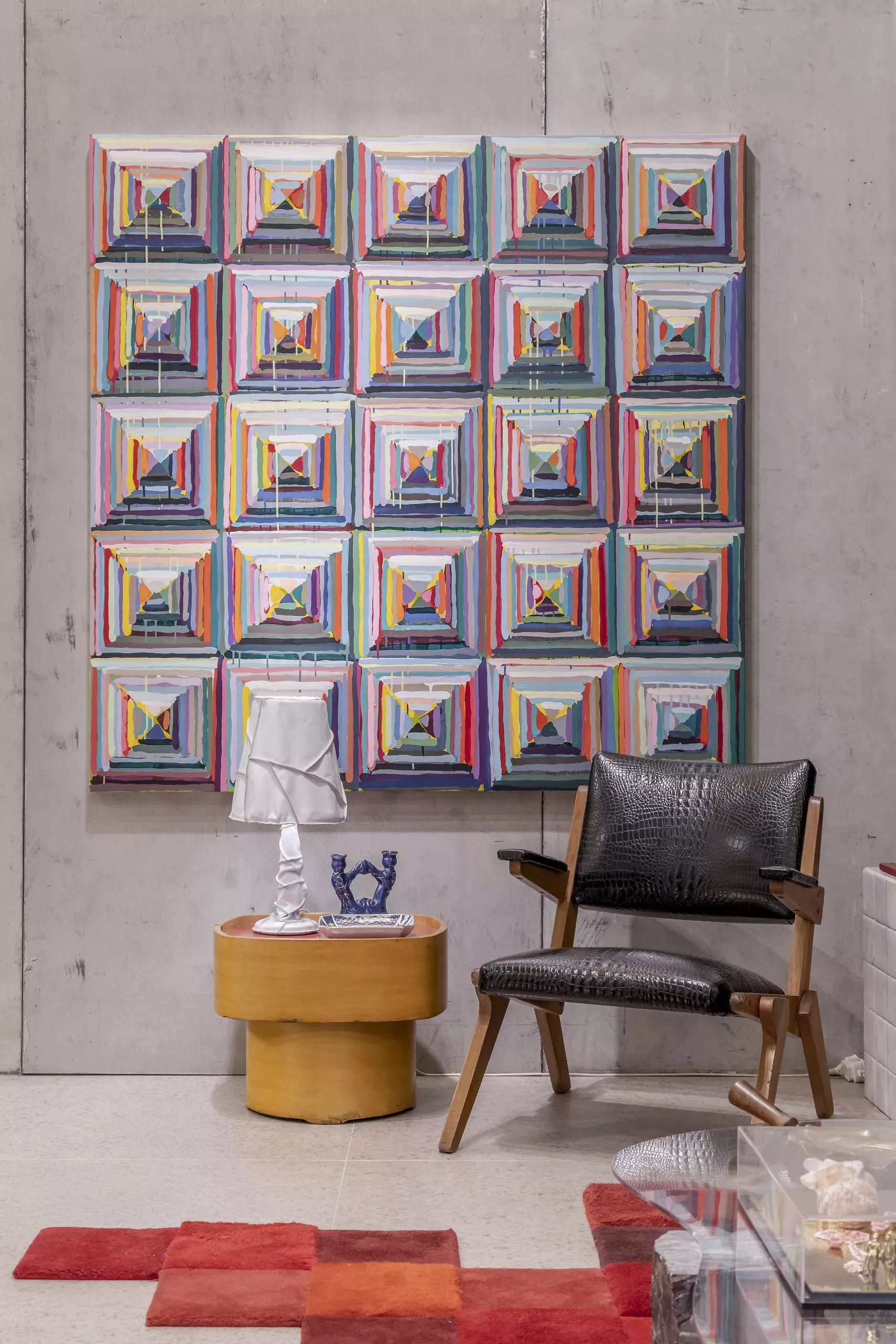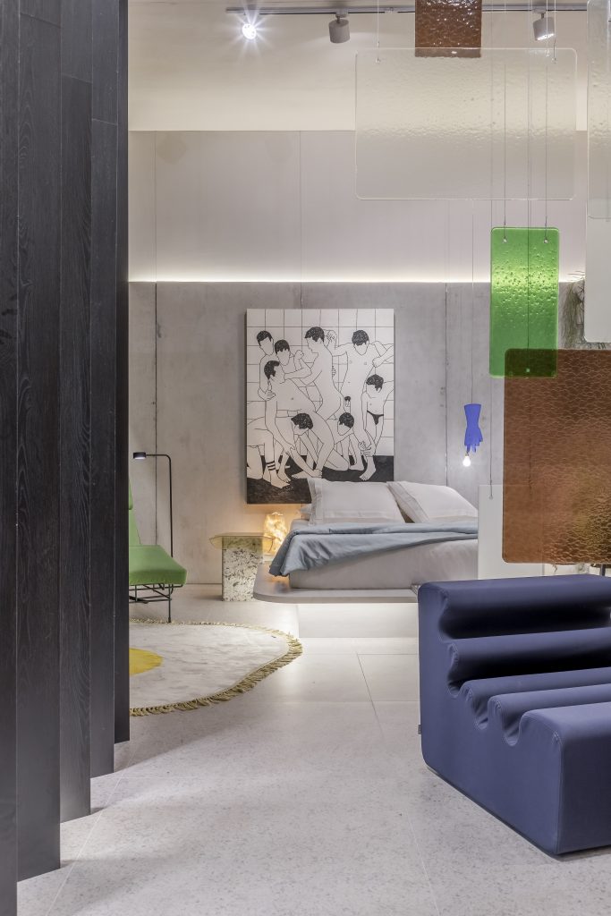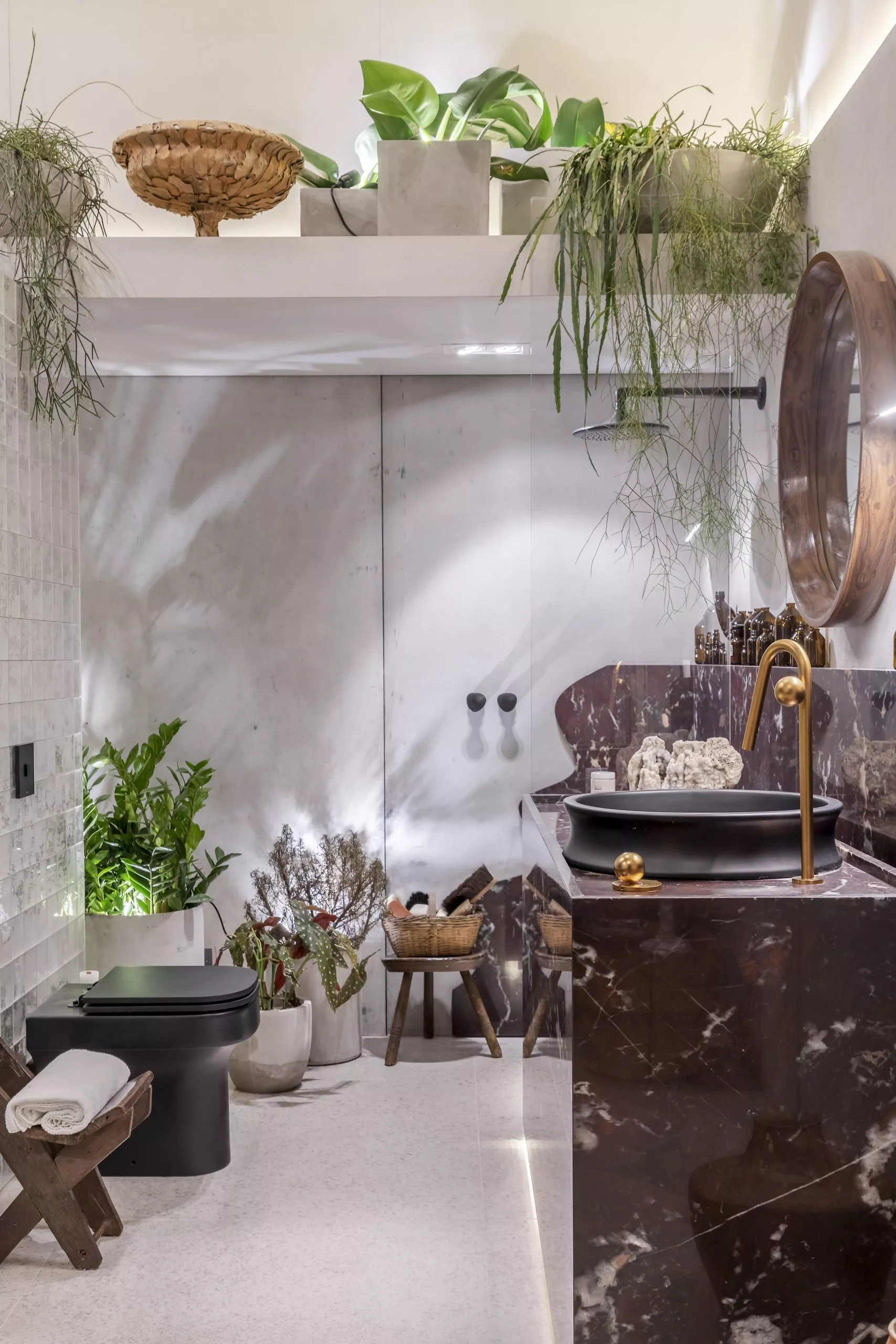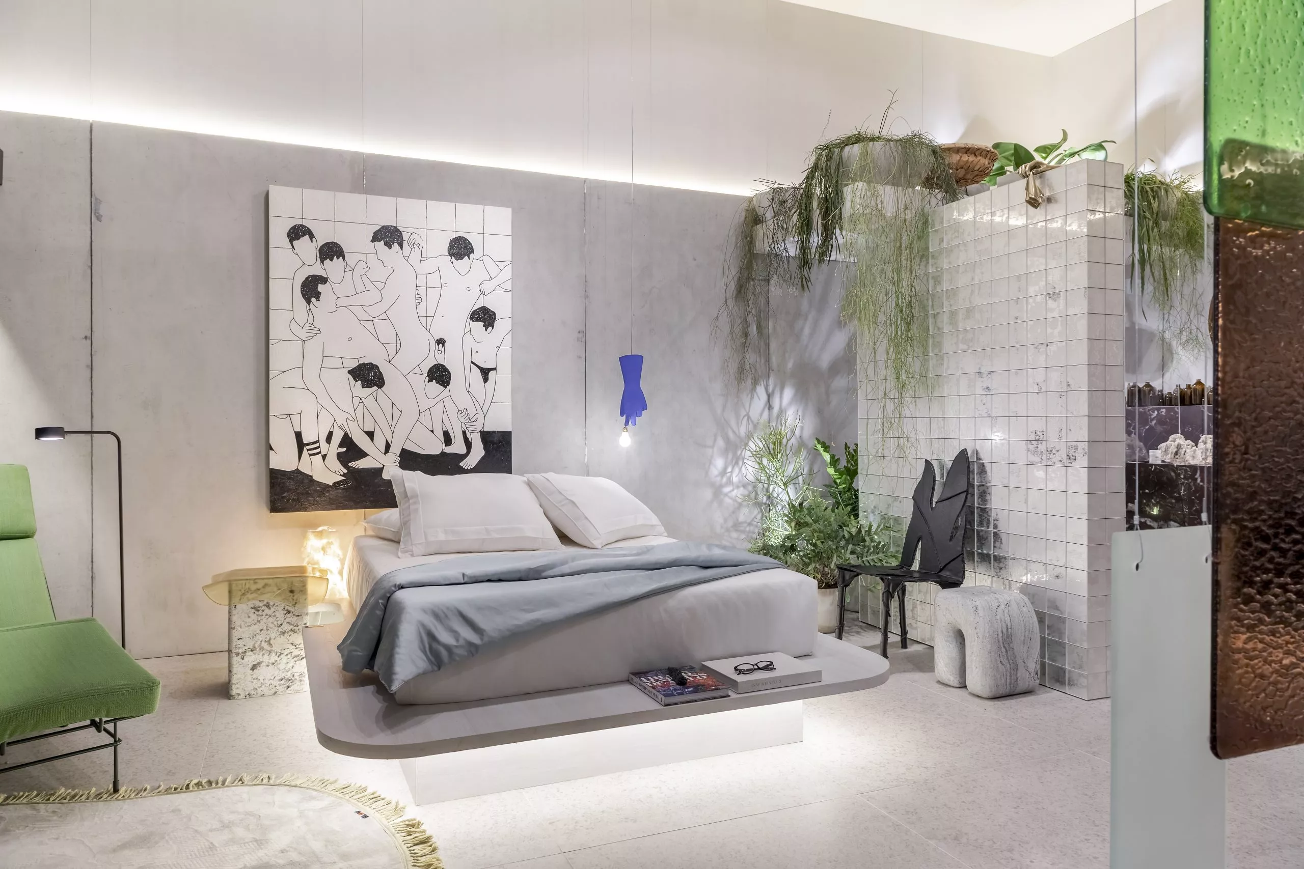 O estúdio de 60m² marca a estreia do arquiteto Pedro Luiz de Marqui na CASACOR. Com a proposta de manter a liberdade criativa, apegando-se ao emocional, lúdico e extravagante, o Estúdio Liberdade traz materiais que se contrapõem, representando o passado e o presente, como uma caverna contemporânea. Mármore brasileiro, cimento, alumínio, bronze, tecidos de lã e veludo e detalhes em barro e madeira estão entre as escolhas. O padrão Absoluto, lançamento da linha Conceito, aparece no revestimento da fachada do ambiente, bem como nos brises que permeiam a entrada.