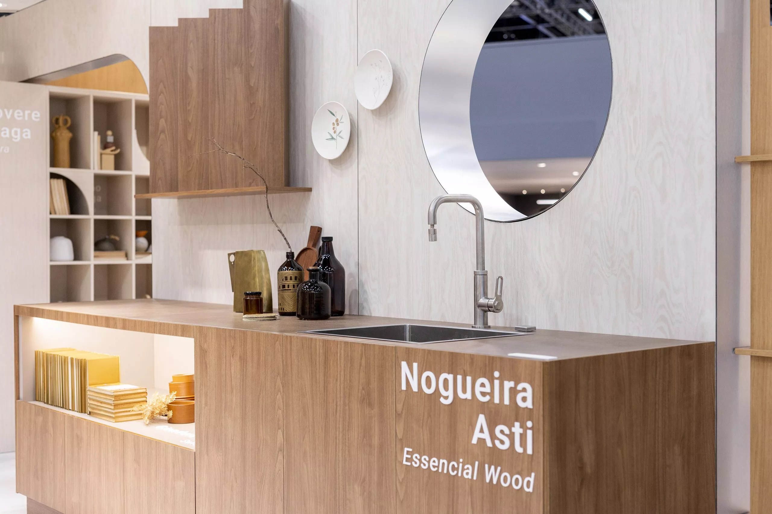 -Nogueira Asti: Inspirado nos característicos móveis do norte da Itália, essa madeira de tonalidade escura e quente traz movimentos calmos e naturais com elegância.