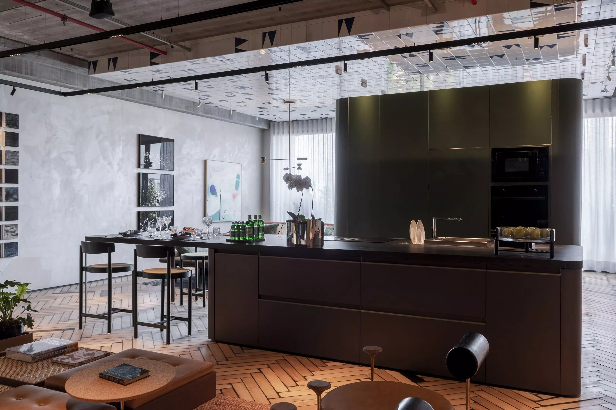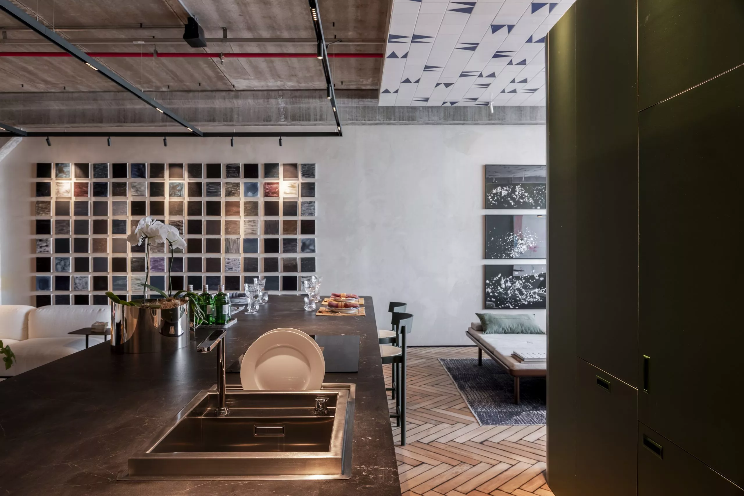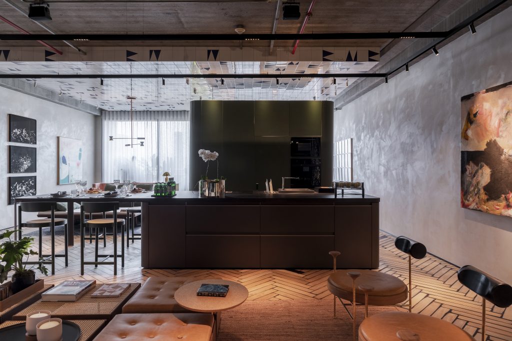 Trazendo um mix de produtos Duratex, surge o Loft do Colecionador, projeto criado pelos sócios da Intown Arquitetura, Hugo Schwartz e Alexandre Gedeon. Obras artísticas, assinadas por artistas como Thiago Haidar, Manoela Monteiro, Rizza e Susanne Schirato, foram o ponto de partida para a elaboração do espaço que apresenta na marcenaria o padrão Cumaru Raiz, da linha Essencial Wood e no revestimento, o padrão Metrópole, da linha Design. Para revestir a parede externa do banheiro, os arquitetos optaram pelo padrão Verde Real, da linha Essencial. Já a parte interna do armário da cozinha foi revestida com o padrão Sirena, da linha Trama.