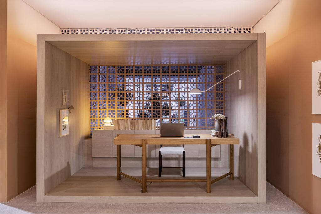 O home office, que ganhou destaque com a pandemia, foi o espaço escolhido como tema do projeto dos arquitetos Josemar Costa Jr. e André Azevedo. A Sala Bayac, desenvolvida pela dupla, destaca-se pela arquitetura contemporânea de linhas retas e emprego de marcenaria funcional, com destaque para o revestimento da porta, teto e parede, onde os profissionais usaram o padrão Carvalho Eterno, da linha Essencial Wood, que apresenta catedrais mais abertas, cor homogênea e estrutura delicada.