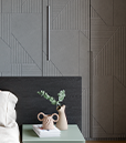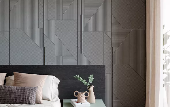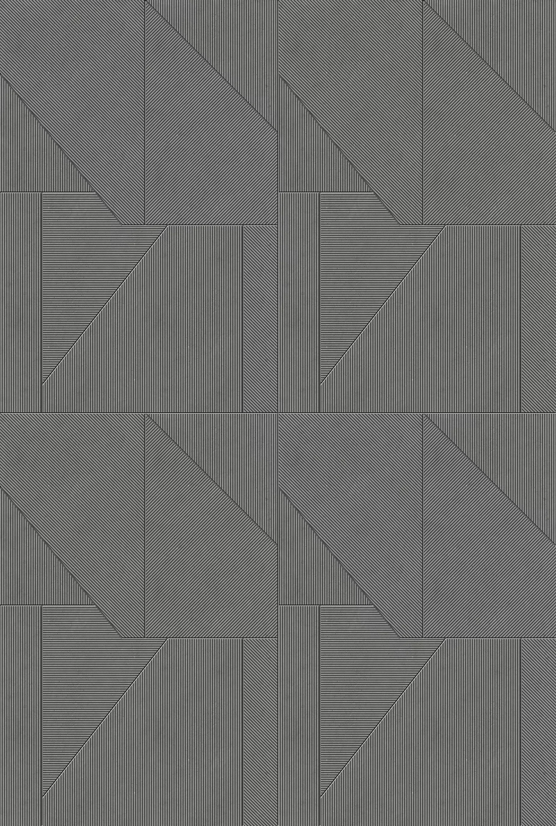 Com uma presença robusta e industrial, este padrão traz o concreto com efeito canelado tridimensional, sendo versátil permitindo combinações com padrões unicolores, criando um visual moderno e contemporâneo.
