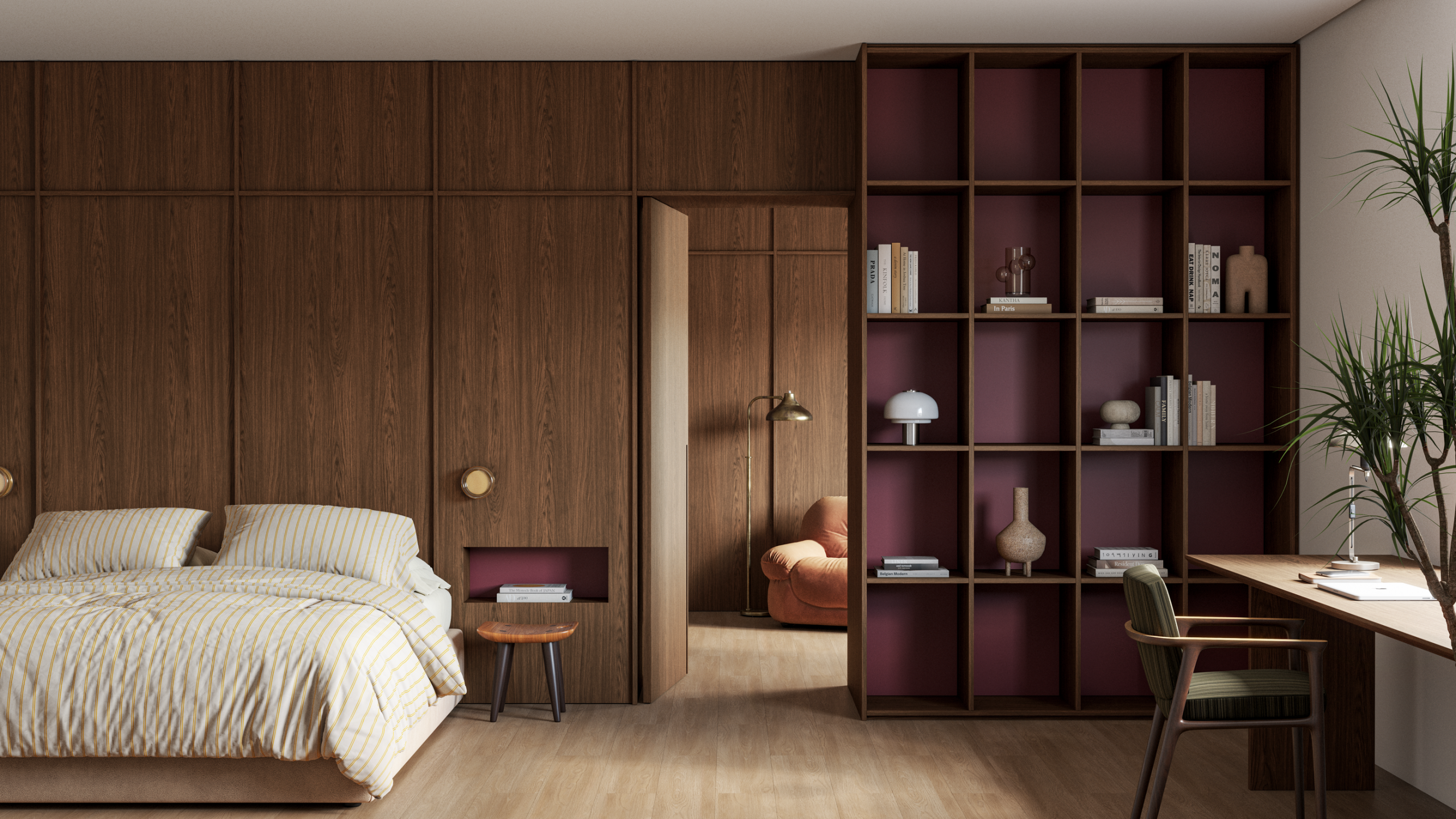 Com tonalidade marrom aquecida e veios bem definidos, o Carvalho Brun traduz uma estética intensa e acolhedora. O pigmento dourado acrescenta brilho sutil e profundidade, criando ambientes elegantes, íntimos e contemporâneos.