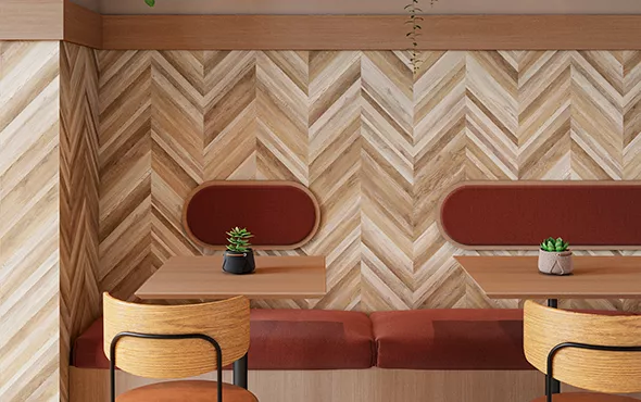 Com sua paginação característica, o Chevron traz movimento sem deixar de ter o toque que aquece da madeira, possibilitando combinações simples ou ousadas sem perder o charme.