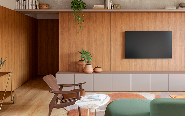 Combinando a beleza e a tradição do Freijó, a naturalidade da madeira se apresenta de forma imponente, renovando o ambiente com elegância. Seu tom quente e a textura suave acolhem, transformando qualquer espaço em um refúgio atemporal e primoroso.