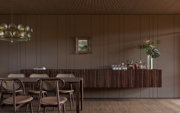 O Marrom Retrô emerge como expressão do tempo inscrito na matéria. Sua tonalidade terrosa carrega a memória dos gestos artesanais e a força dos pigmentos de origem, criando espaços onde a tradição se atualiza e a identidade se revela de forma íntima e permanente.