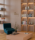 Unindo sobriedade e deslumbre de forma equilibrada, a tonalidade neutra é surpreendida pelo brilho delicado do perolizado junto à textura natural da madeira. Transpassando um toque de glamour discreto, mas marcante, e trazendo a personalidade do espaço de forma refinada e tranquila.