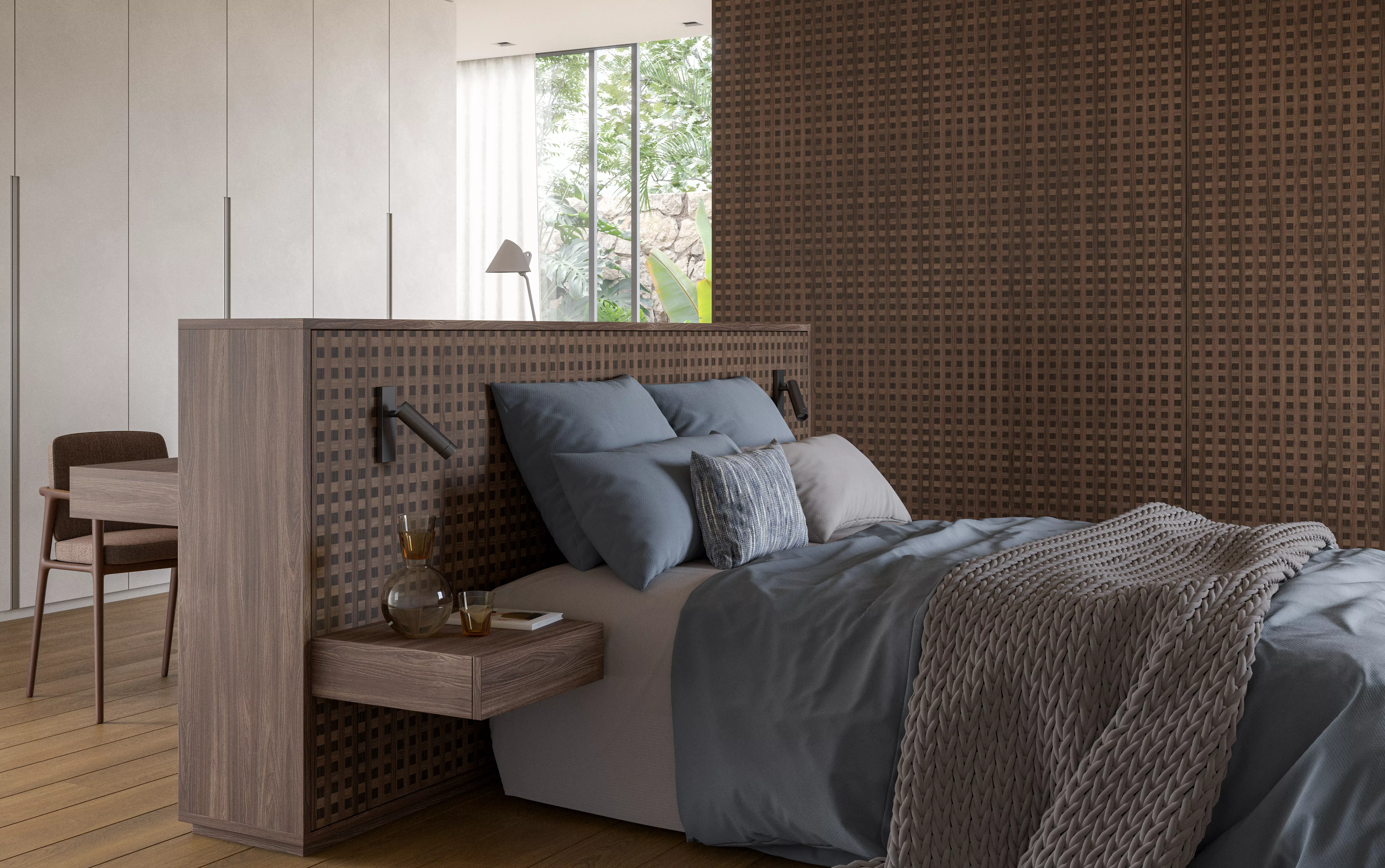 Idealizado pelo escritório Carlos Rossi, o projeto do painel foi inspirado nas linhas expressivas de um Muxarabi, reinterpretadas através do conceito de Marchetaria. A fusão entre elementos clássicos e contemporâneos reflete uma tendência crescente na arquitetura e design de interiores.